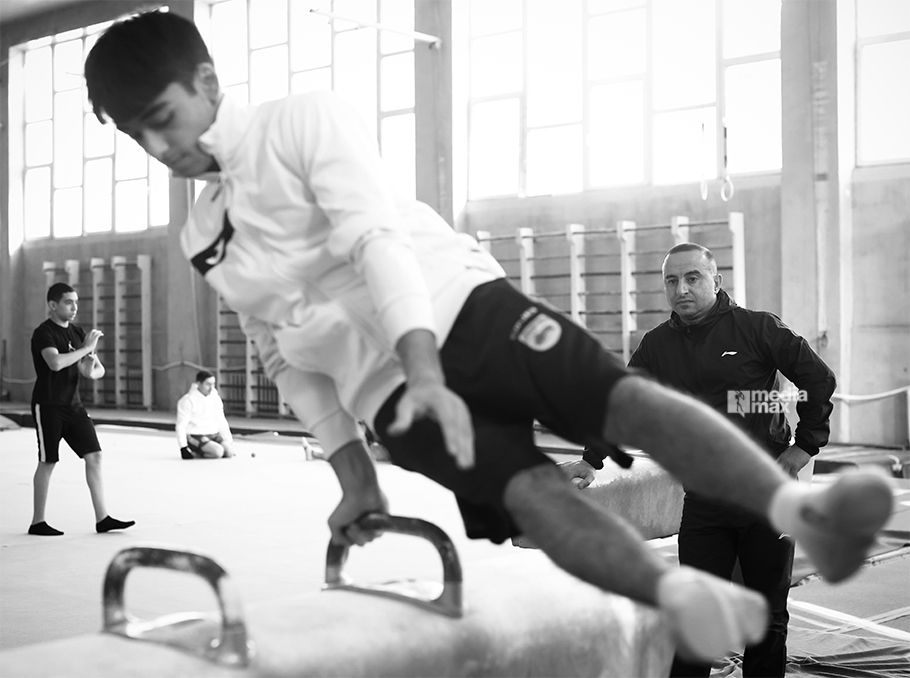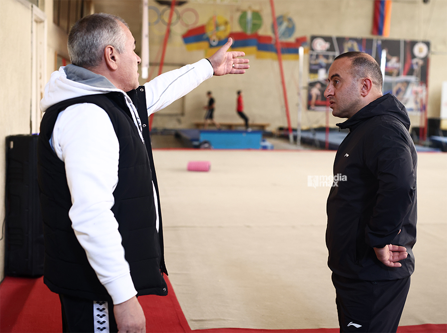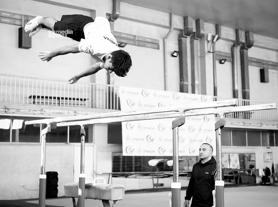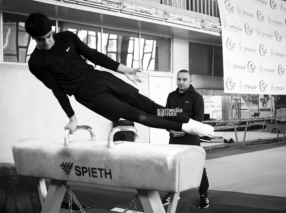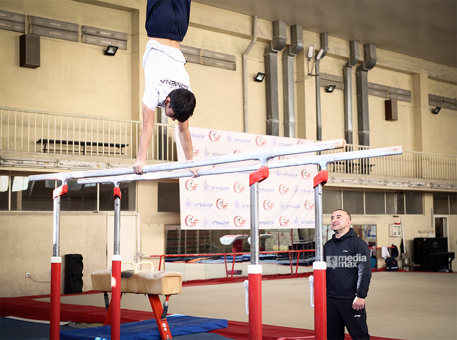 Մինչ մենք զրուցում ենք ու փորձում բացահայտել «Երիտասարդ մարզիչներ»-ի մեր հերթական հերոսին, կամաց-կամաց դահլիճ են մտնում մարմնամարզության հավաքականի անդամները եւ սկսում անցկացնել հերթական մարզումային օրը։