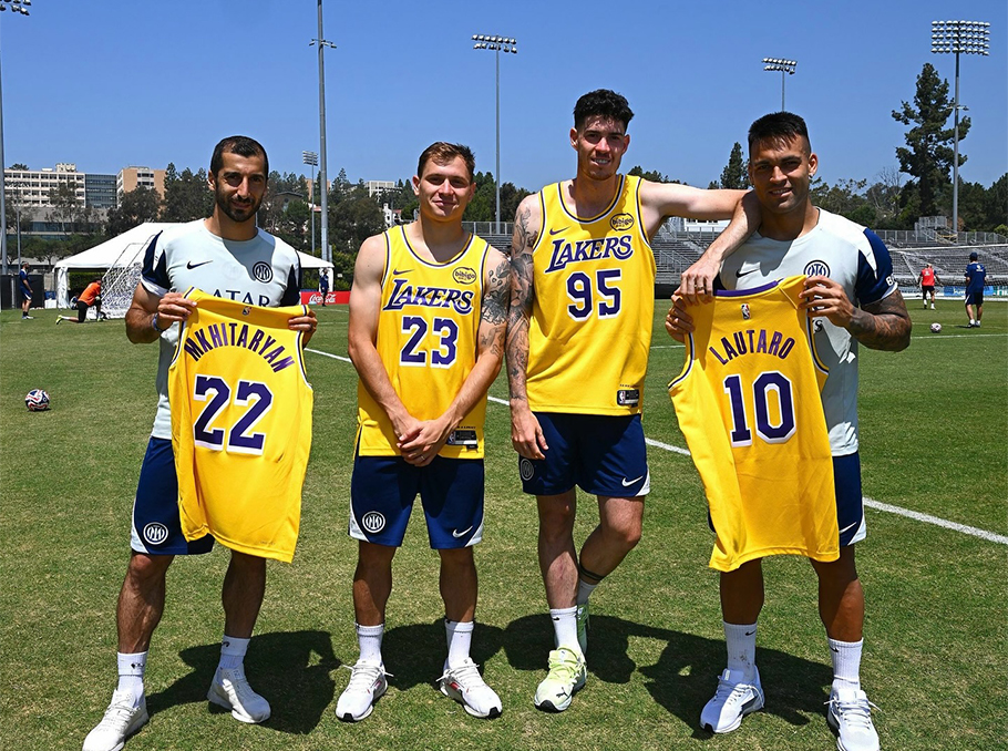 Մեկնելուց առաջ իտալական ակումբի ֆուտբոլիստները մարզում են անցկացրել ու ստացել «Լոս Անջելես Լեյքերս» բասկետբոլային ակումբի անվանական շապիկներ: