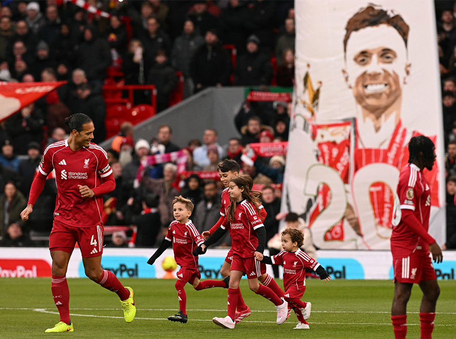 Անգլիայի Պրեմիեր Լիգայի «Լիվերպուլ»-«Վուլվերհեմփթոն» խաղի մեկնարկից առաջ ֆուտբոլիստների հետ «Էնֆիլդ»-են դուրս եկել ամռանը ավտովթարից մահացած Դիոգո Ժոտայի որդիները՝ Դինիսը եւ Դուարտեն։ Ֆուտբոլիստը երկու ակումբներում էլ հանդես է եկել: