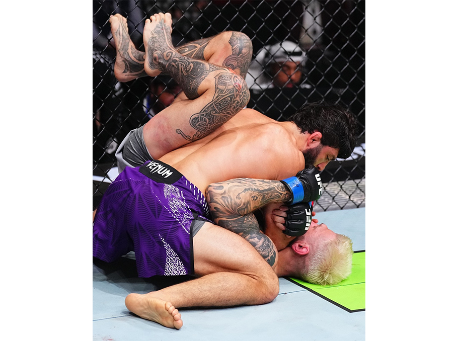 SINKING THE SUBMISSION IN THE MAIN EVENT @ArmanUFC gets the arm triangle in Round 2 for a massive victory!
