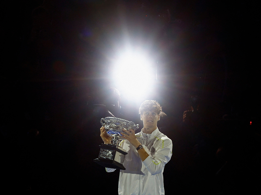 Յանիկ Սիներն է՝ Ավստրալիայի բաց առաջնությունում հաղթանակ տոնելուց ու գավաթը նվաճելուց հետո։